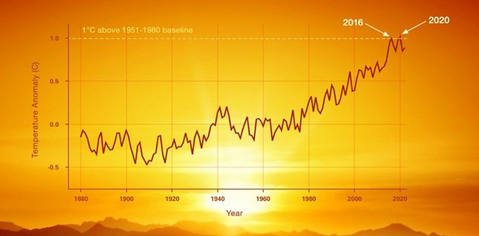 Figure. 1 Global average temperature (degrees Celsius) change since 1880, Source: nps.gov