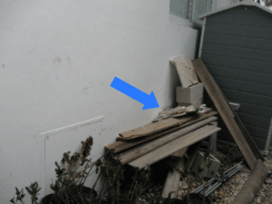 - Condensate discharge too close to building, deposited too close or not diverted away